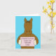 En tecknad av en leende brun häst som håller ett tecken mellan dess framhuvar. På skylten står det "Grattisar för att få din nya häst för sällskapsdjur".