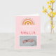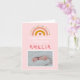 En söt och glad rosa som firar nyfödd bebis i världen! En underbar liten regnbåge med ett hjärta i centrum i toppen i moderna nyp, senap och . Lägg till ett eget foto och baby namn för att anpassa dig.