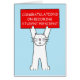 En stor vit tecknad-katt håller upp en röd skylt som säger "Grattisar om att bli Student president".