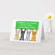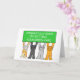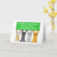 Fyra tecknader katt som håller upp en banderoll med grön färgad som säger "Grattisar för att få grönt-kortet".