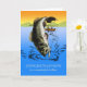 Grattisar på Pension för en bror. Vintage fiskeplats med återträbåt, två fiskare, stora munbassänger, solnedgång och stort stänk i sjö vatten. Hazy grönt backe i den yttersta avstånd. Art, bild och versell copyright © Shoaff Ballanger Studios.