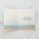 En tom inbjudan papper med ett kuvert vilar på en sandstrand mot bakgrund av att man försiktigt sveper över handflatan träd och ett serenhav under en vibrerande solnedgång på 45-årsdagen. All text kan ändras.