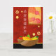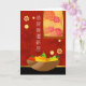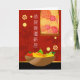 Grattisar på ditt nya hem, pappert hälsningskort, skrivet på mandarinkinesiska. Illustration med en skål av frukt, krysanthemums vägg hängande och bambu på väggen. Lycka till för ett hem i lycklig. Art, bild och versell copyright © Shoaff Ballanger Studios, 2022.