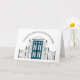 Detta är en modern gratulerar på ditt nya hemkort med en enkel vektor teckning i en blå husdörr. Lägg till text och logotyp för företag