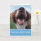 Att hitta en ny bästa vän är fantastisk och att anta en rädding hund är något att le över. Kortet för grattisar har en valp för rädding. Hon är en varm brun och vit spanielblandning, som går från örat till fluffigt öra när hon har grönt gräs och blå himmel.