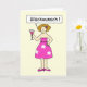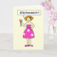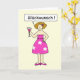 Dam står på ovansidan av en enorm kaka med en cocktail i handen och säger Gturwunsch som översätts med "Grattisar på tyska". Bilden ställs mot en bakgrund av citronfärgaden.