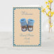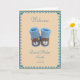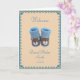 Hälsningskort med blå bootyer som lyckönskar föräldrar till ett pojke födelse. Anpassa kortet! Framsida (valfritt): Type baby namn och födelsedatum. Fotografi av Maria Santos (Lusinhas do Sul)