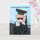 Bubba i en vit krage, svart slips, svart rob, studentmössa och nyans. Den humoristiska texten på framsidan är helt enkelt "Grattisar, Student!" "De säger att det är en HUND-EAT-HUND där ute. Men en COOLA CAT som du borde inte ha några problem!" Du kan anpassa och ändra teckensnittet.