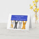 Tecknad katter som står upp med en stor blå skylt som säger "Grattisar på examen från polisakademin".