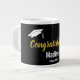 Ett vitt student-tak står ovanför faux-texten (inte folie) guld som säger "Grattisar". Vid grund i svart, vitt och guld mugg kan du redigera den vita visningen för att mata in student namn. Du kan också redigera året för klassen student.