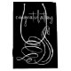 Vit svan på svart bakgrund med grattis text. Bakgrunden till färg kan ändras. Text kan redigeras.
