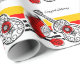 Kvismisk design som ritas i en stil med souvenirer från en spansk helgdag, en färgad guitar från järn, lacy fläkt och röd ros på en strimlad bakgrund. Ett anpassade i svart, vit, röd och gyllene gult som du kan anpassa med egen text, bilder och egna idéer. En originalbild av digitala konster.