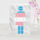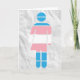 Ett gratulationskort för en transkvinna, med en djärv och iögonfallande design av en människoikon för kön i färgerna för transpersoners stolthetsflagga, redigerbar text inuti