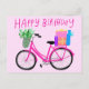 GRATTULERAR PÅ FÖDELSEDAGEN Söt Rosa Cykel Anpassa Vykort