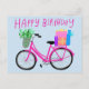 GRATTULERAR PÅ FÖDELSEDAGEN Söt Rosa Cykel Anpassa Vykort
