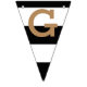 En svart och guld-strimlad banderoll med ord-grattisarna som kan vara personlig med er formulering och färg.