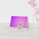 Valp med festhatt. Söt Maltese Shih Tzu-valp i guldfesthatt och flug, lavendelgradientbakgrund, födelsedagstårta och konfetti. Fira alla tillfällen, använd som en festinbjudan eller ett tackkort.