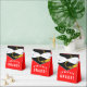 Kreativets röda studentfest ger en sockeldesign och en grattis linje för klass 2024. Redigera text som ska anpassas för student i den överordnade klassen.