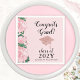 Skapa anpassningsbar-klass för 2025 rosa studenten-servar med Gratulerara Grad-, år- och namn-mallar som dekoreras med rosa ros och student sockefillustrationer.