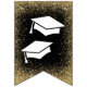 Elegant studentfest buntning med ett svart och guld-tema, inklusive snyggt faux glitter, murbruk, stjärnor, ord "gratulerar grad" och klassår.