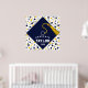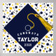 Kreativets studentfest poster med marin blå gradens sockel med guld tassel på konetti-bakgrund. Om du vill anpassa texten lägger du till namn och det överordnade klassåret.