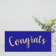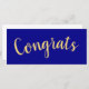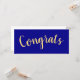 Den här kortdesignen har stor centrerad "Gratulerar" skript i festive, elegant-varm gult. Bakgrunden till denna moderna minimalistiska utformning är royalet blått i djup rik.