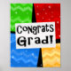 Roligt och grafik för yrkesmässig abstrakt med vibrerande rött, gult, grönt och blått. Gratulerar till graden på ett väl utfört arbete. Skapa lite upphetsning med nya och höftmoderna favörer och dekoration. Design Copyright © CustomInvitesOnline.com