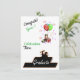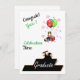 " Gratulerar" student med röd ballong och flaska vin. Vin och ballonger med ord " gör att vi kan skaka student" längst bak.