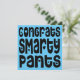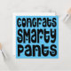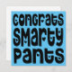 Säg gratulerart högt och tydligt i roligt stil till graden eller vem som helst som ska gratuleras till denna stora feta typografi Gratulerar Smarty Byxor i ett svart, bläckande typsnitt med hjärtmotiv. Anpassa enkelt ditt meddelande på motsatt sida. Du kan också ändra den blå bakgrunden till ett annat färg om du vill, samt teckensnittet och färg för hälsning på baksidan via alternativet Anpassa ytterligare.