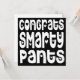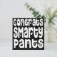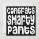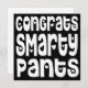 Säg gratulerart och tydligt när du roar stil till graden eller vem som helst som ska gratuleras till denna stora feta typografi Gratulerar Smarty Byxor i ett vitt, bläckande teckensnitt med hjärtmotiv på svart bakgrund. Anpassa enkelt ditt meddelande på motsatt sida. Du kan också ändra den svarta bakgrunden till ett annat färg om du vill, samt teckensnittet och färg för hälsning på baksidan via alternativet Anpassa ytterligare.