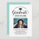Elegant studenten:s annonskort och inbjudan till studentfest gratulerar och tillkännager din grad i stil! Innehåller svart gradens sockel, "Student" i skript och modern anpassningsbar som kan vara personlig med detaljer om student, namn, skola och party. Lägg till ett favoritfoto av graden. Observera att den ljusa akvatiska gröntens blå accent färg på kortets baksida kan ändras till vitt eller till ett annat färg som koordinerar med fotot eller party färger.