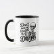 Den här muggen har en skelett på sig som säger Gräv inte fram dramat.