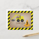 Konstruktion tema födelsedag med illustration av en gul grävare och orange kon med gul och svart kant.