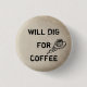 Med den här kommandoknappen gräver orden för kaffe i stort svart brev, i ett rustiskt, slitet typsnitt, och ett litet, roligt, karikatyrt, raketstyrt espresso kopp på ena sidan, på beige, grått och brun jordbotten. Det är en lustig gåva till en arkeolog eller en paleontolog, eller någon annan person som gräver i sitt arbete, och som konsumerar för mycket koffein för sin egen bra, det vill säga söt mycket varje arkeolog jag någonsin träffat.)