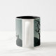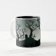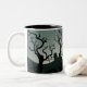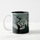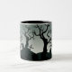 Graveyard Halloween anpassningsbar mugg. En kyrkogård med gravar och kor under skoky träd på grått bakgrund. Moln och det halvmånne måne på himlar.