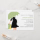 Snyggt Baby Shower inbjudan har en vacker vektorillustration av ett dräktigt mamma som håller ett paraply för polka punkt mönster och två presentsäckar.