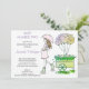 Whimsical illustrerad gravid mamma målad rosa baby sprinkle baby shower med rosa ballonger och mamma med paraply och regnstövlar galoscher. En inbjudan till baby shower för din 2:a babys ankomst.