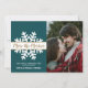 Modern Teal White och Guld Photo Julkort för Gravid. Förväntar föräldrar! Söt hand skrev typografiskript "mer merrier"-kort för att dina nyheter från lycklig med familj och vänner i julhelgen. Har en enorm vit snöflinga med lite guld-accent på bakgrunden i grönt färg och en fotomall. Vid baksidan av snövita prickar på baksidan. Enkel att anpassa meddelandet och ladda upp fotot. Om du behöver hjälp eller matcha artiklar kontaktar du designern!