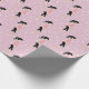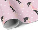 Gravid kvinna med en papegoja på rosa och vit polka dots bakgrund.