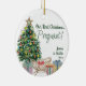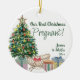 Vår första julpreganta helgdag prydnadsföremål. Utformningen har ett belyst julgran med presenter som är täckt av skräp och gåvor, med namn och år på ena sidan och ditt ekogramfoto på andra sidan. Perfekt för er första julklapp som väntar er första baby som ett tillkännagivande av graviden eller som en liten känsloladdad gåva till er själva.