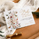 Detta charmiga "baby in bloom"-kort har rustika boho-vildblommor och fladdrande vintage-fjärilar. Den eleganta färgpaletten av tan, rost, terrakotta och vit ger en varm och jordnära känsla som är perfekt för höst-, sommar- och vårfiranden. Texten är en vacker kombination av kalligrafiskript och modern typografi som är både delikat och trendig, vilket ger en touch av sofistikering till den övergripande designen.