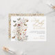 Detta charmiga "baby in bloom"-kort har rustika boho-vildblommor och fladdrande vintage-fjärilar. Den eleganta färgpaletten med tan, rost, terrakotta och vitt ger en varm och jordnära känsla som är perfekt för höst-, sommar- och vår-evenemang. Texten är en vacker kombination av kalligrafiskript och modern typografi som är både delikat och trendig, vilket ger en touch av sofistikering till den övergripande designen.