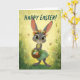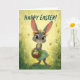 This charming Easter card features an adorable gray baby bunny wearing a floral crown and spring dress, holding a basket of colorful Easter eggs. Set in a glowing meadow filled with butterflies and wildflowers, the artwork blends whimsical, storybook-style charm with bright seasonal warmth. Perfect for kids, families, and anyone who loves sweet, uplifting Easter designs. Printed on premium cardstock for a beautiful holiday keepsake.