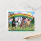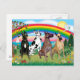 Fyra greyhound, svart, harlequin, brindle och fawn har placerats i bakgrunden av konstnären Jean Fitzgerald som heter "Rainbow Bright". Det är en populär Rainbow Bridge-design för någon som har borttappad en av dessa fantastiska hundar. En ljusstark regnbåge mot ett färgat himlar, en blyg kanin i buskarna och massor av ljusa blommor i färgaden längs den vackra vattenen där segelbåt glider seriöst längs horisonten.
