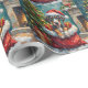 A festive and fun Christmas illustration featuring a single Great Dane sitting inside Santa’s bag full of presents while wearing a Santa hat. With glowing fairy lights, warm cozy lighting, and a festive red and green color palette, this design is perfect for dog lovers, holiday enthusiasts, and anyone who enjoys cheerful holiday artwork. Ideal for Christmas gifts, apparel, mugs, cards, and seasonal home decor.