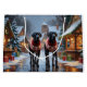 This festive design captures the joyful spirit of the holiday season, featuring an adorable dogs.Nestled in a winter wonderland, complete with a decorated Christmas tree, and beautifully wrapped presents. Snowflakes gently fall, adding a magical touch to the scene, while the vibrant colors of the holiday decorations create a warm and cheerful atmosphere.