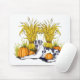 Höst- och Halloween-teckningar från Danes-R-Us med Great dane med en bakgrund av maj och pumpor fram.