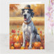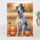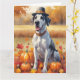 En vattenfärgsmålning stil av ett muntert sitta i hund i en hög av pulserande höst löv, omgiven av små pumpor och spridda hörn. Hund bär lite pilgrimhatt och beams med glädje, och fångade Thanksgivingens anda. I bakgrunden skapar mjuk skörd fält och träd med gyllene hud en fredlig landskapsambians. Struktur och varma, nedsmutsade hösttonar ge är en mysigt, nostalgisk perfekt för att fira säsongens skönhet.