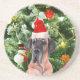 Great dane med Julgran Gift Boxes Santa Hat Underlägg Sandsten