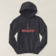This hoodie is much better than I expected. top quality, true sizing, and really comfy. I was a bit worried that the lettering would be too dark on the navy blue hoodie, but once it arrived it was perfect. Easy to see the words, and the quality of the wording is fabulous. I will be buying more hoodies in future